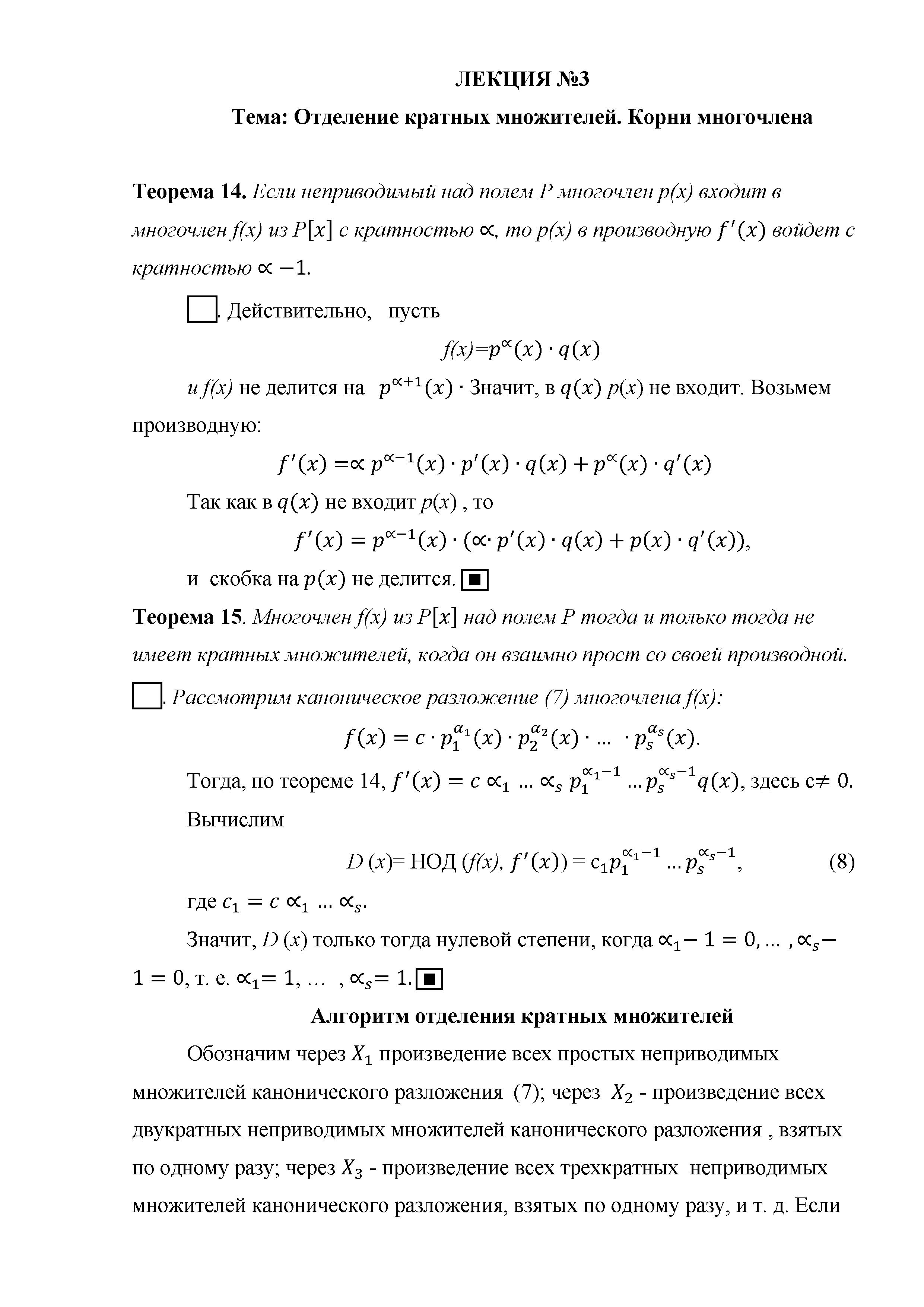 Лекция №3. Отделение кратных корней. Корни многочлена